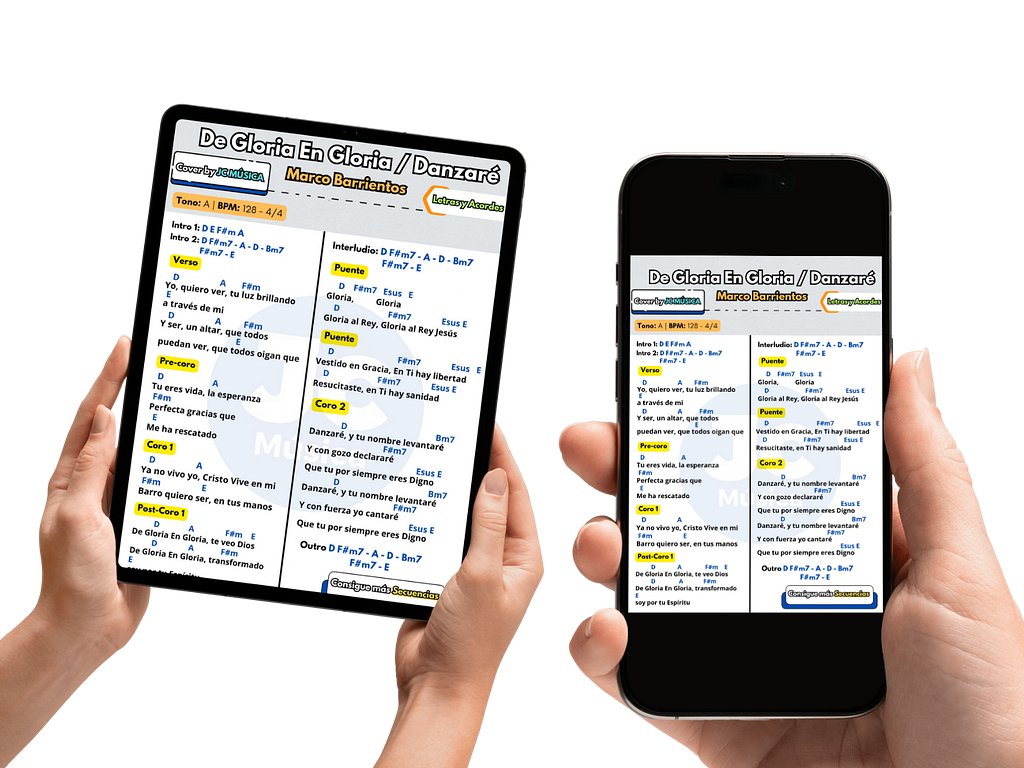 "De Gloria En Gloria / Danzaré (Synth Cover)" incluye las letras y acordes originales y oficiales de la canción.