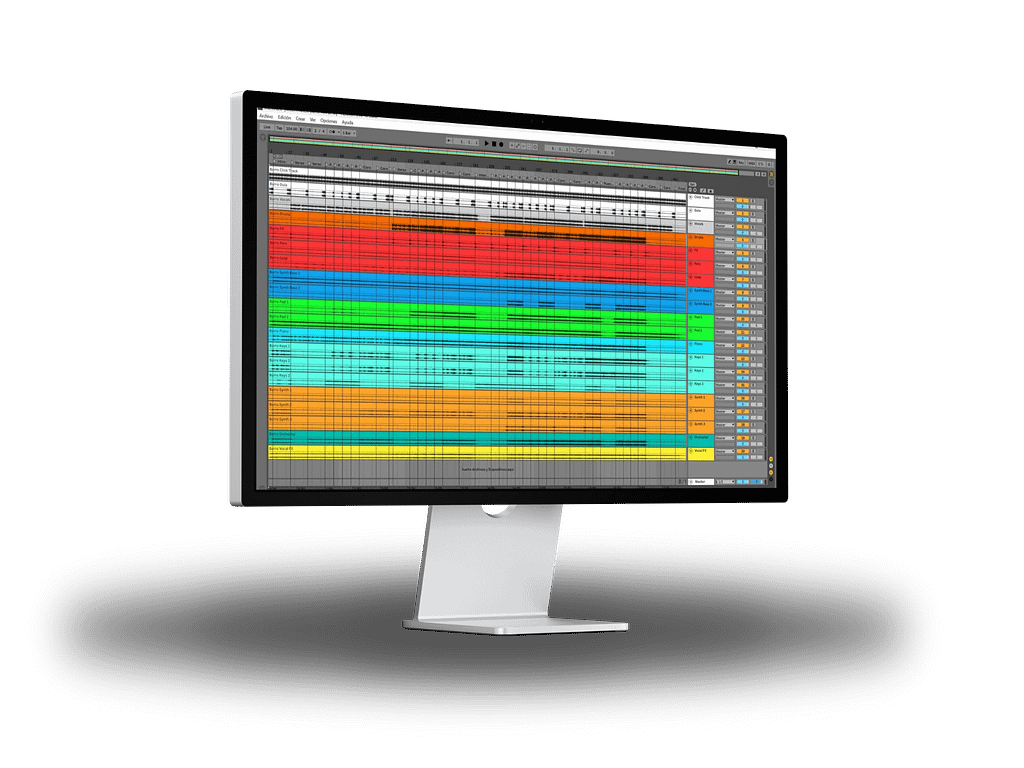 "Medlay Que Ruja El León (Synth Cover)" incluye los archivos de audio de la canción organizados en una sesión para el DAW Ableton Live.