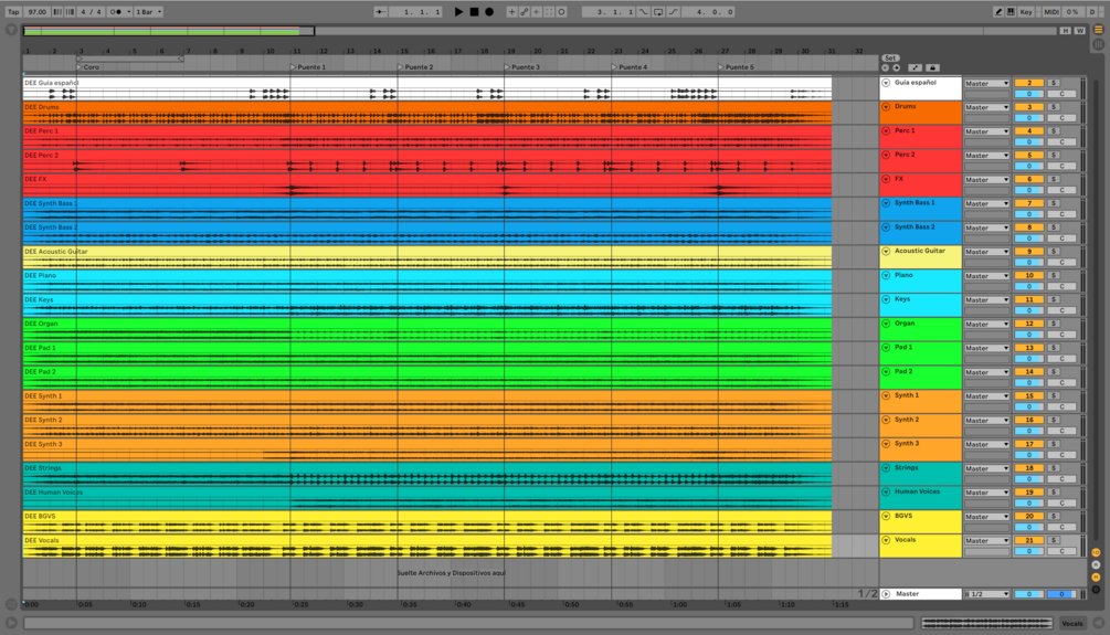 "Días de Elías (Synth Cover)" incluye los archivos de audio de la canción organizados en una sesión para el DAW Ableton Live.