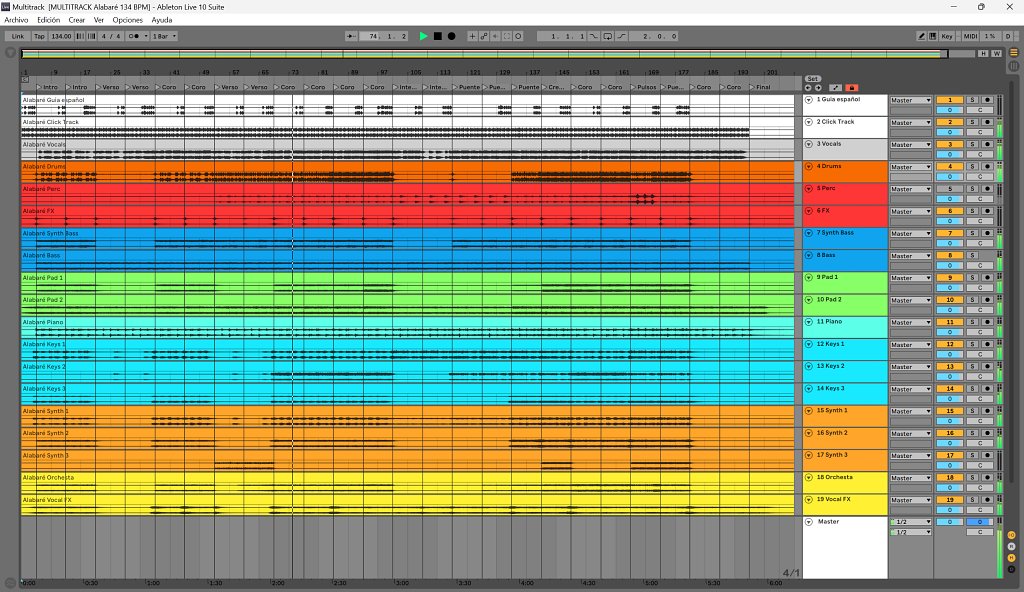 "Alabaré (Synth Cover)" incluye los archivos de audio de la canción organizados en una sesión para el DAW Ableton Live.